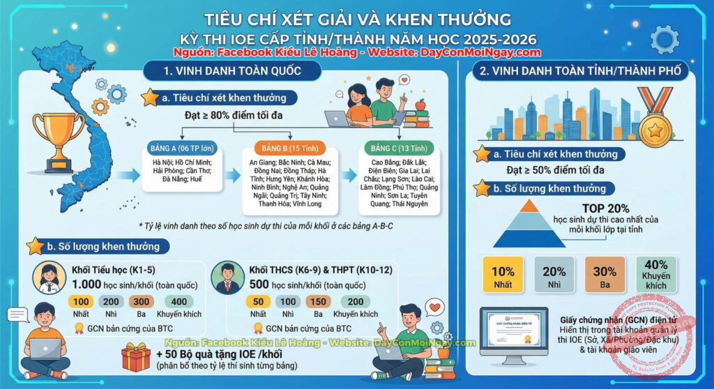 Home » Tiêu chí xét giải và khen thưởng kỳ thi IOE cấp tỉnh/thành năm học 2025-2026